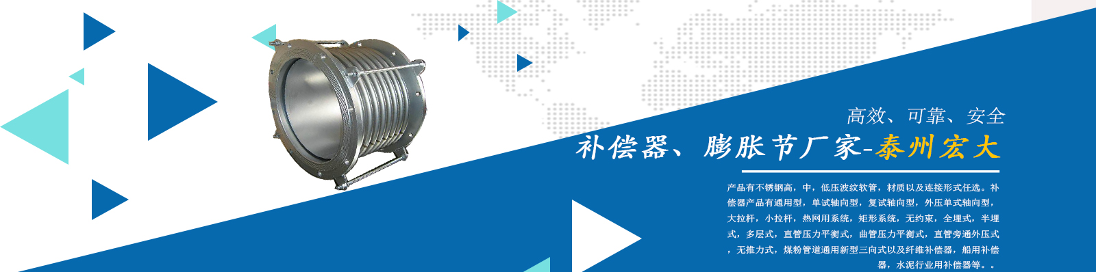 泰州市宏大機械設備有限公司是一個企業(yè)內部管理嚴謹,工作作風穩(wěn)健,職工素質水平較高,經濟實力雄厚,產品質量放心,外部形象良好的企業(yè)。本公司專業(yè)從事補償器廠家,膨脹節(jié)廠家,膨脹節(jié)補償器,其中有不銹鋼高,中,低壓波紋軟管,材質以及連接形式任選。補償器產品有通用型,單試軸向型,復試軸向型,外壓單式軸向型,大拉桿,小拉桿,熱網用系統,矩形系統,無約束,全埋式,半埋式,多層式,直管壓力平衡式,曲管壓力平衡…...